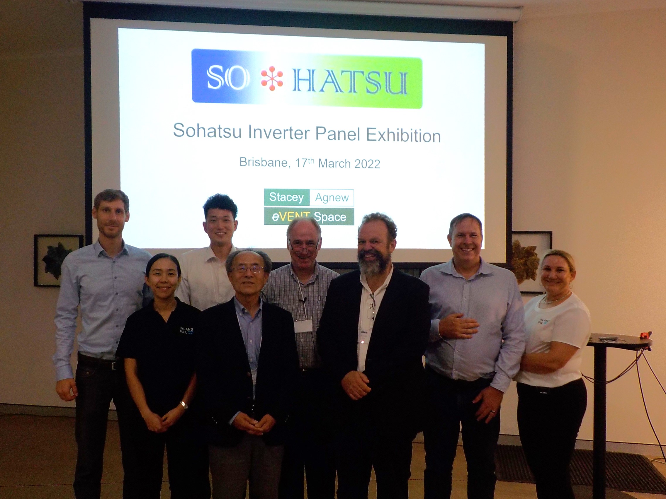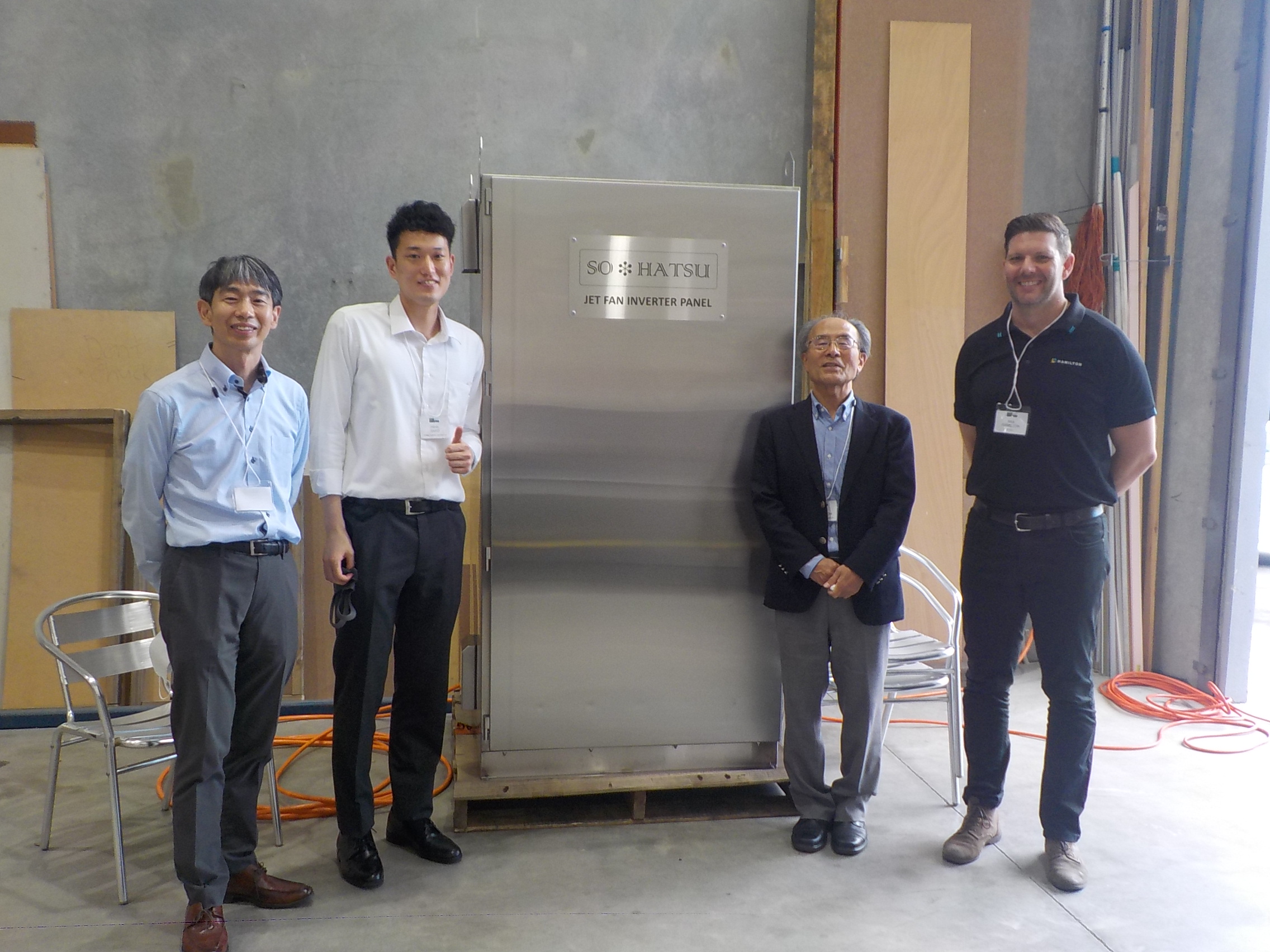 President of Sohatsu, Dr Ichiro Nakahori, Executive Vice President Dr Toshi Sakaguchi, and Hardware Engineer Mr Hibiki Sako explained the technology behind their innovative inverter panel and drive filter system, and the use case for their inverters, being clean waveforms, no zero phase current, and the ability to drive loads on long (2,000 m) unshielded cables. In our adjacent workshop, Sohatsu explained their inverter panel and demonstrated the lack of zero-phase current while driving a fan. The explanation was assisted by Nick Hamilton, whose company Hamilton Instrument & Electrical Pty Ltd built the demonstration panel in Queensland to Australian standards.